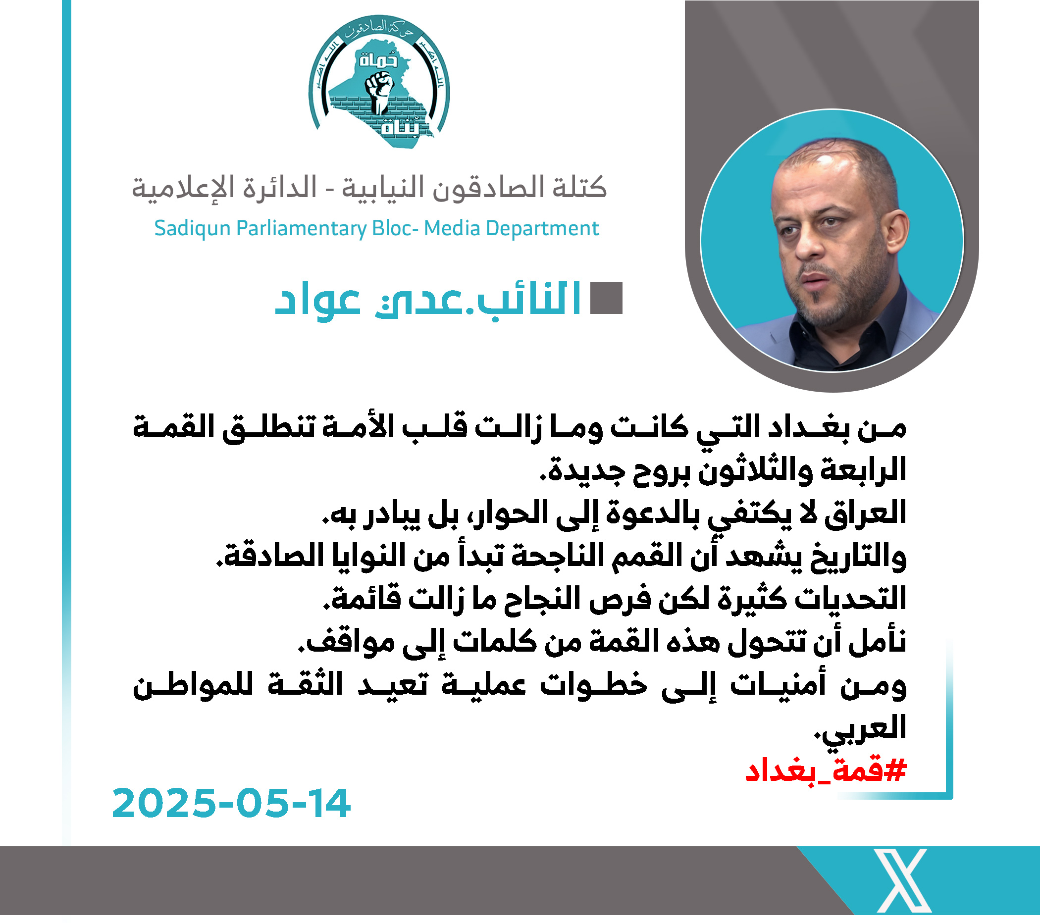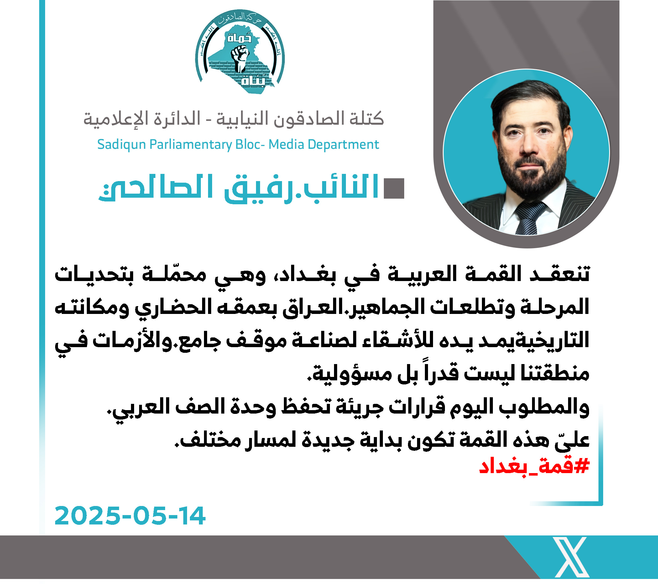 النائب ناسك الزنكي: قمة بغداد تأكيد على عمق العراق الحضاري وانفتاحه على أشقائه العرب
