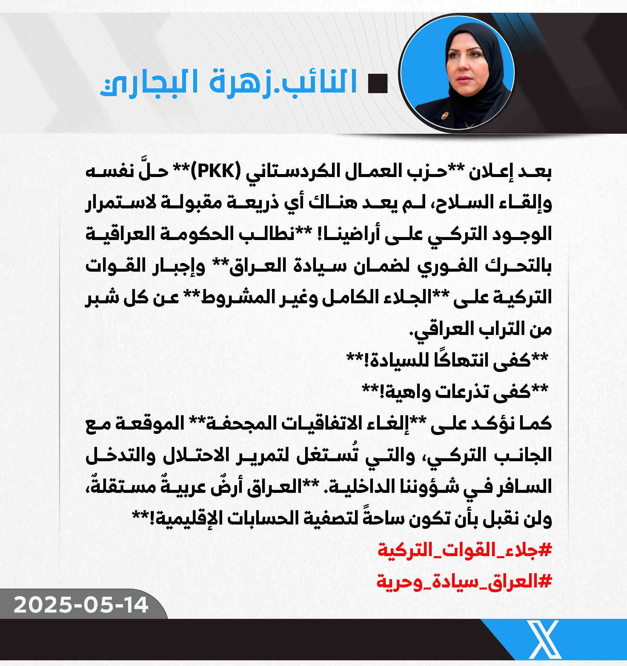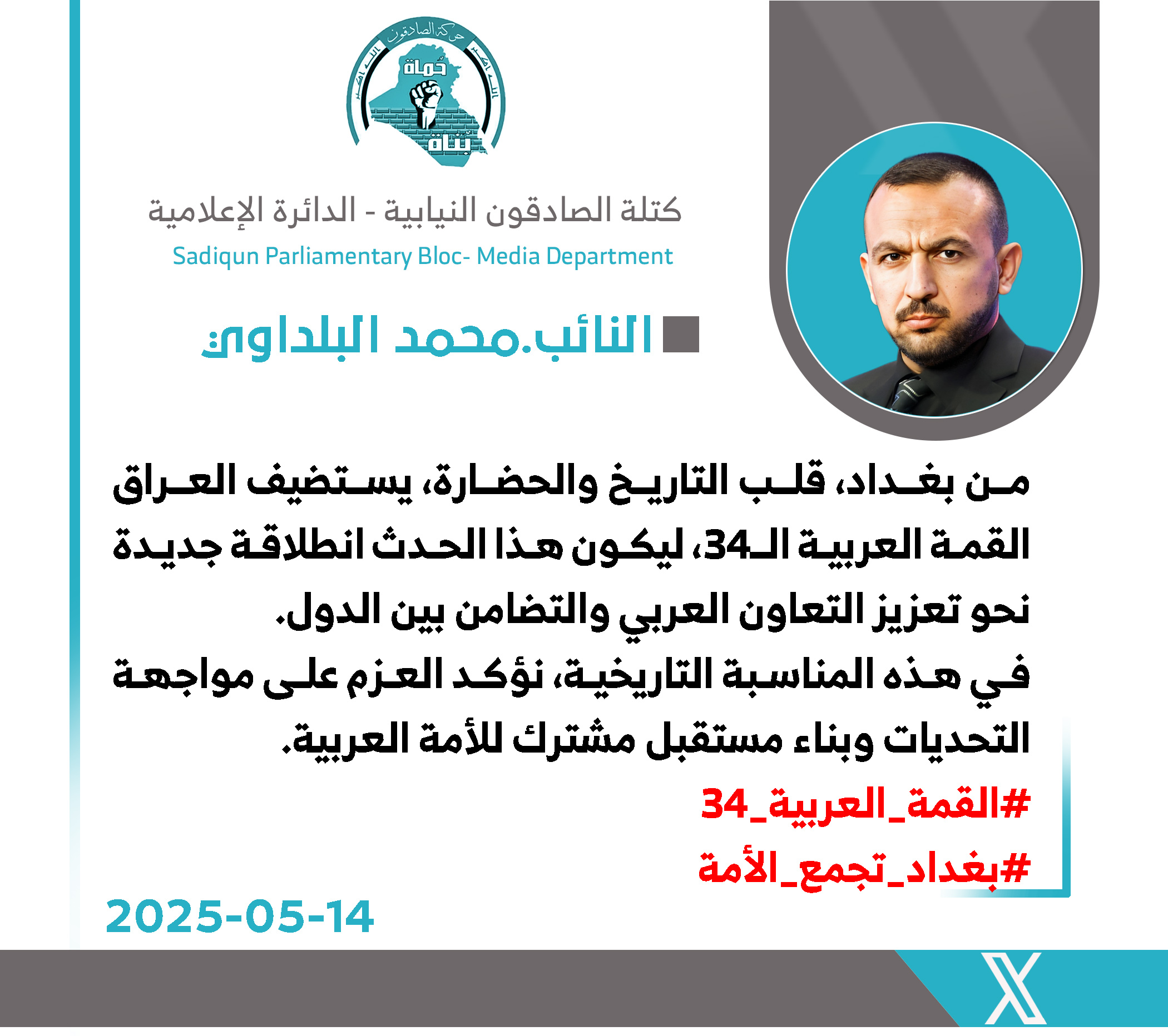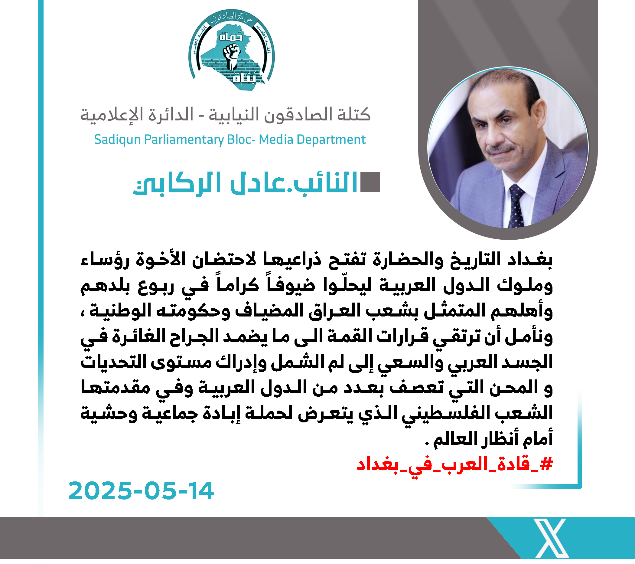 أكدت النائب عن كتلة الصادقون، ناسك الزنكي، الاربعاء، أن احتضان العاصمة بغداد للقمة العربية الرابعة والثلاثين يمثل مناسبة تاريخية تؤكد عمق العراق الحضاري وانفتاحه على محيطه العربي. وقالت...