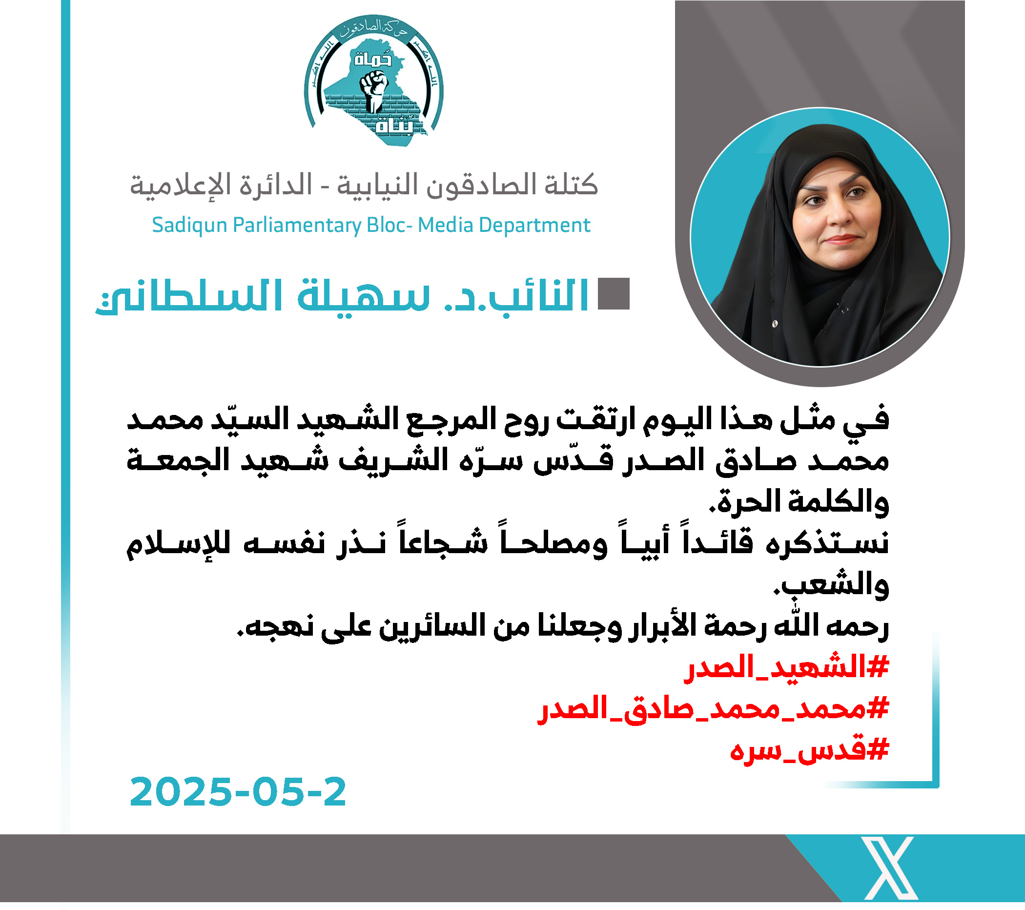 وجهت رئيس لجنة النقل والاتصالات النيابية عن كتلة الصادقون، النائب زهرة البجاري، السبت، نداءً عاجلاً إلى رئاسة مجلس النواب وأعضائه للمُصادقة على مقترح قانون تعويض المواطنين الذين فقدوا...