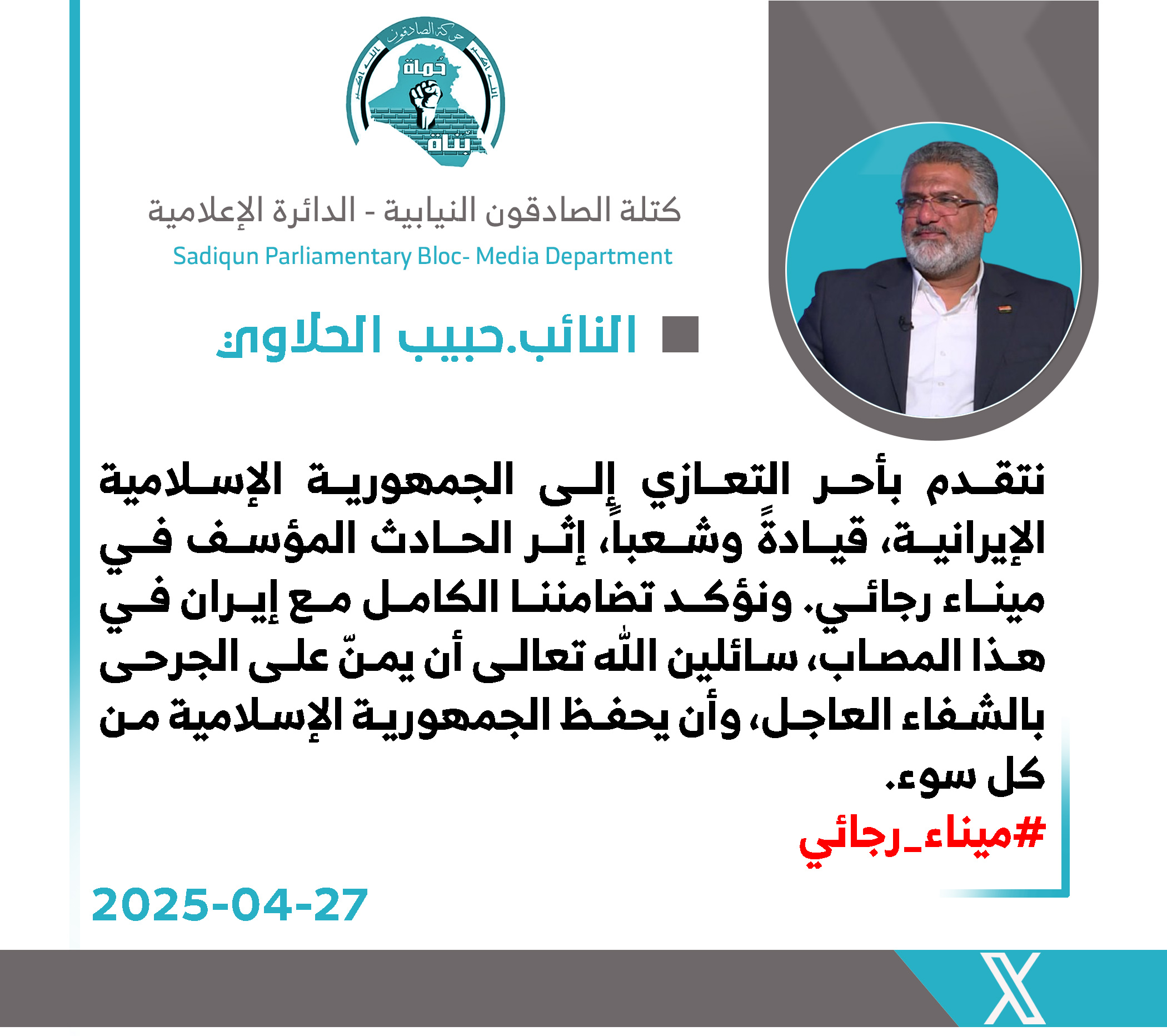 المزيدأكد المتحدث باسم كتلة الصادقون النيابية، النائب محمد البلداوي، اليوم الاثنين، أن قوى الشر والعدوان تواصل محاولاتها لإثارة الفوضى والإرهاب في المنطقة، مستهدفة الشعوب الحرة والصامدة. وقال...