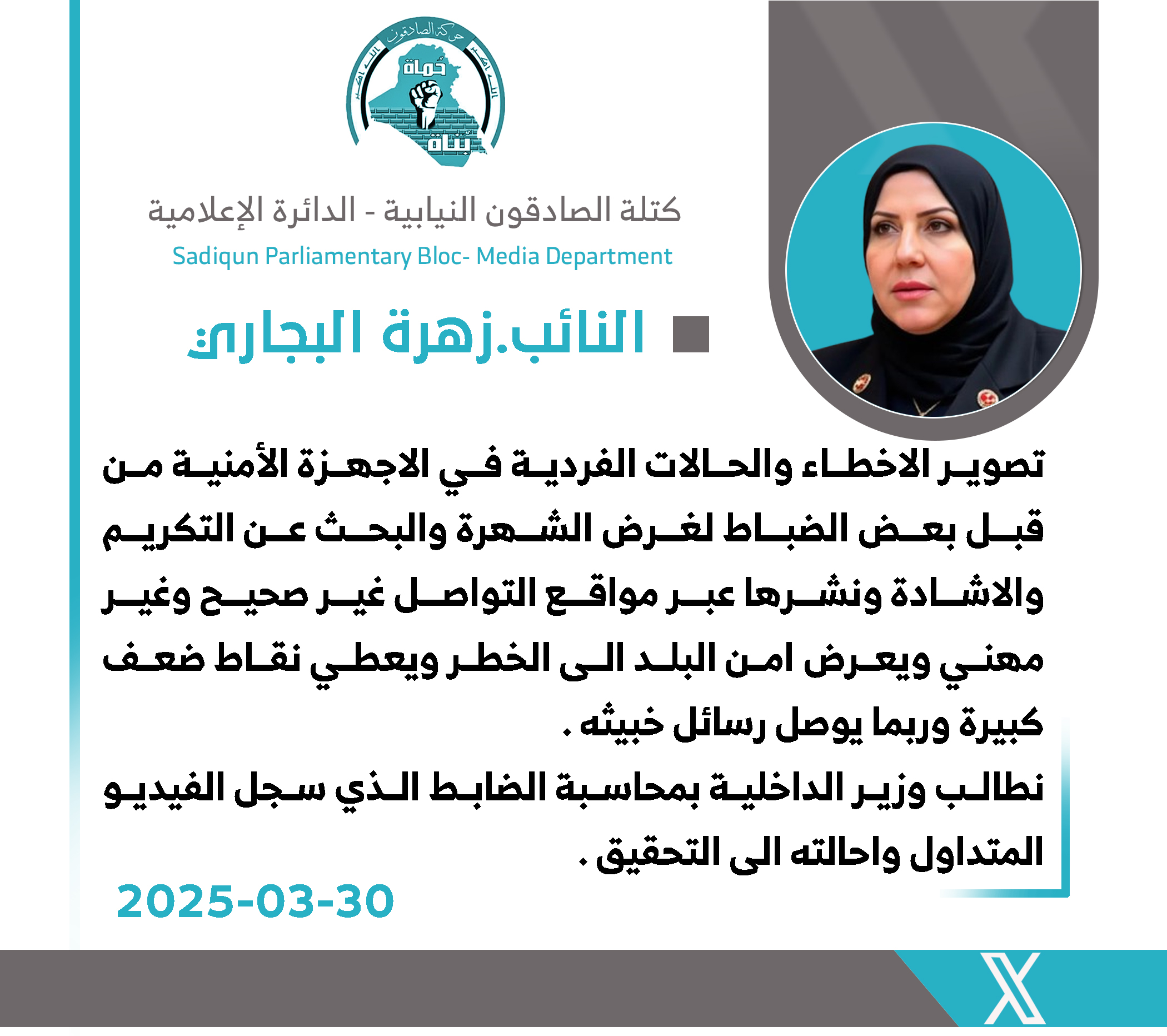 أكد الأمين العام لحركة عصائب أهل الحق، سماحة الشيخ قيس الخزعلي، اليوم الأثنين ، ضرورة دعم جميع القوات الأمنية العراقية، وعلى رأسها الحشد الشعبي، واصفًا إياه بأنه "صمام أمان للعراق". وقال...