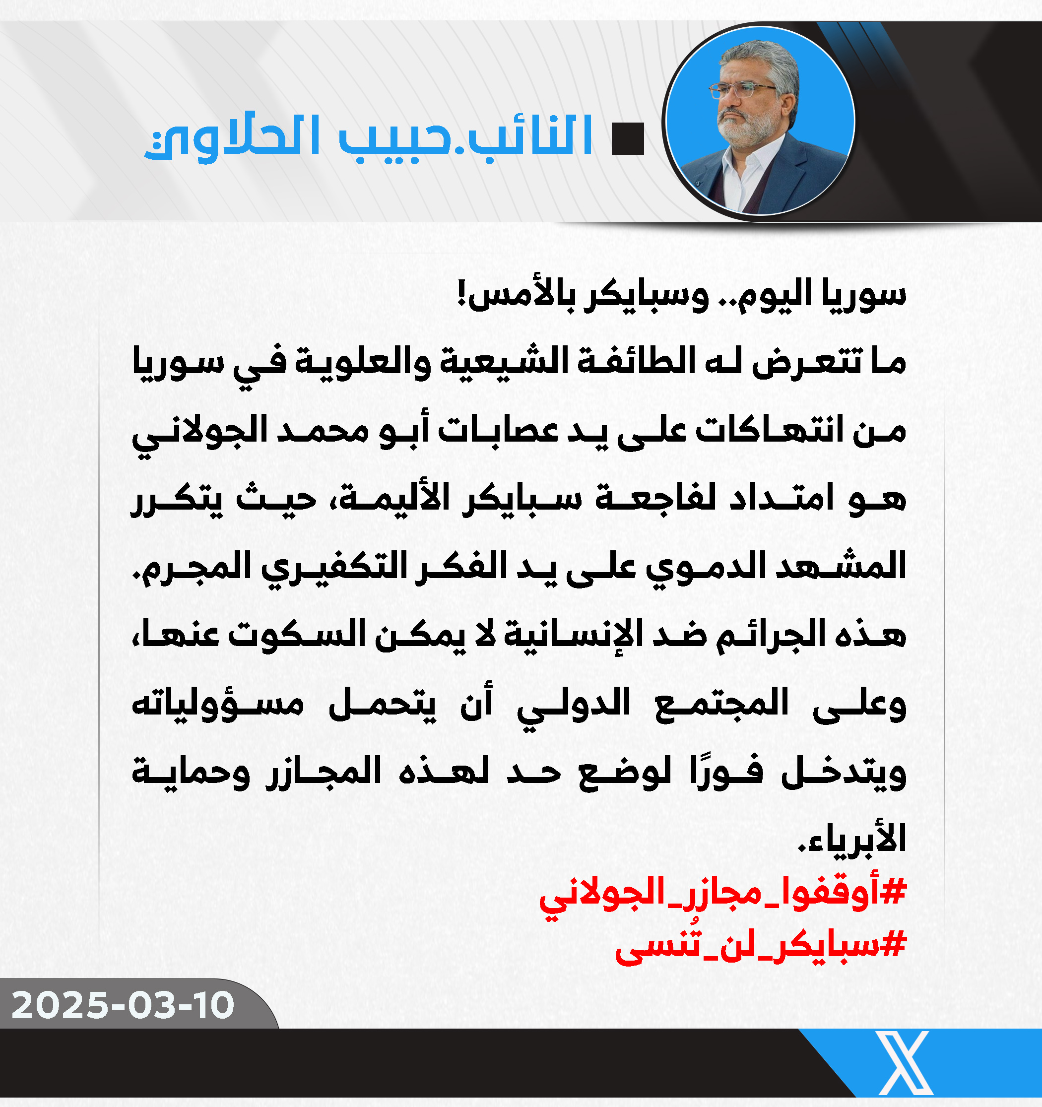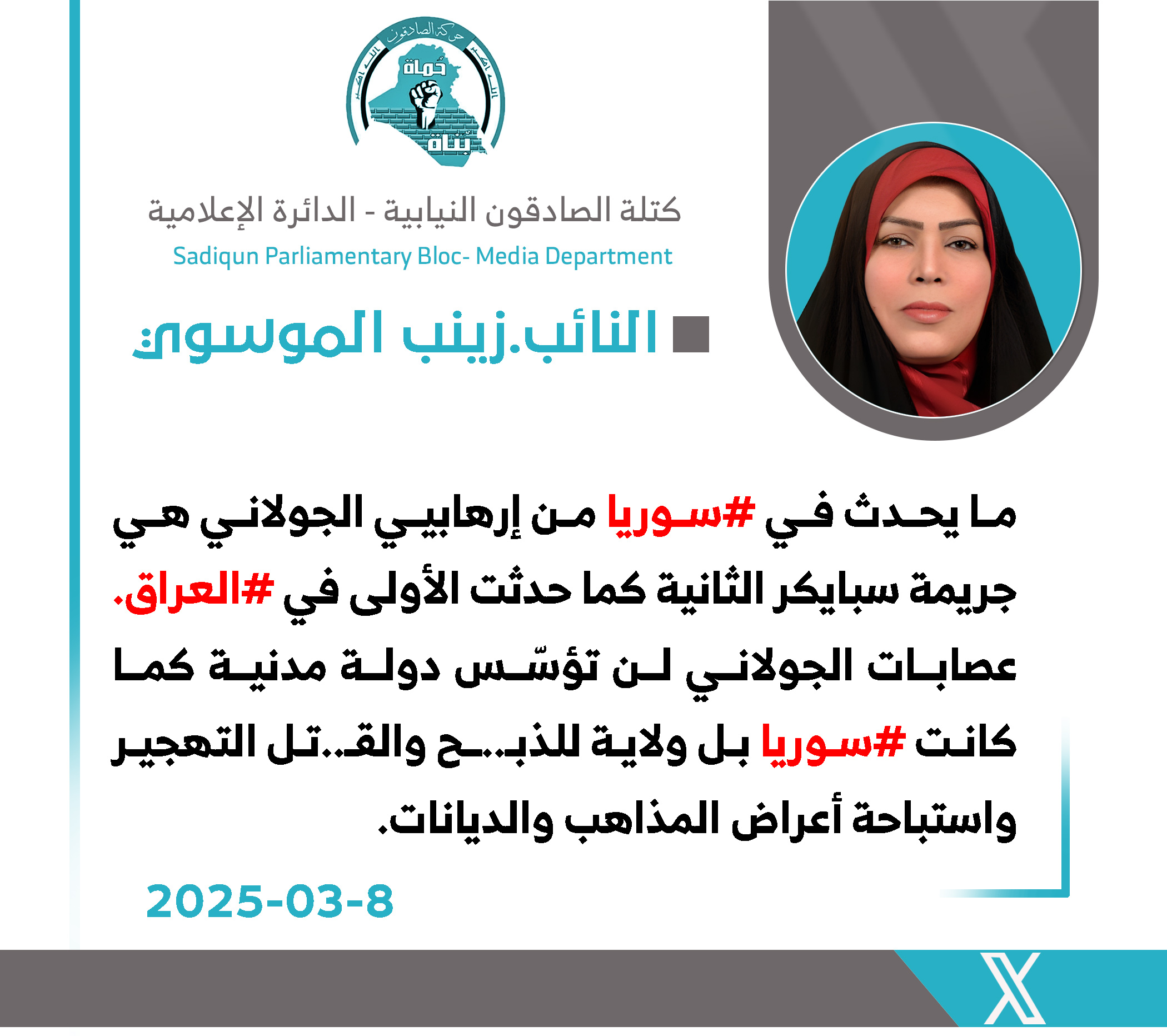 حذر عضو الهيئة العامة لحركة الصادقون، زيد البهادلي، اليوم الاثنين، من المخططات التي تستهدف أمن واستقرار البلاد، مشيرًا إلى أن حكومة الجولاني بعد ان كشرت عن انيابها أصبحت اليوم أداة واضحة...