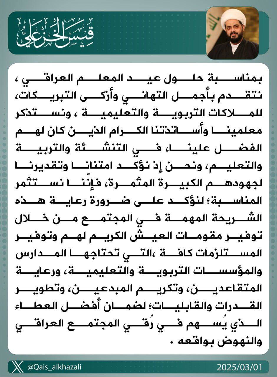 أكدت رئيس لجنة النقل والاتصالات النيابية عن كتلة الصادقون النائب زهرة البجاري، اليوم الأحد، أن ذكرى الانتفاضة الشعبانية تمثل صرخة بوجه الظلم والاستبداد، مشيرةً إلى أن هذه المناسبة تستدعي...