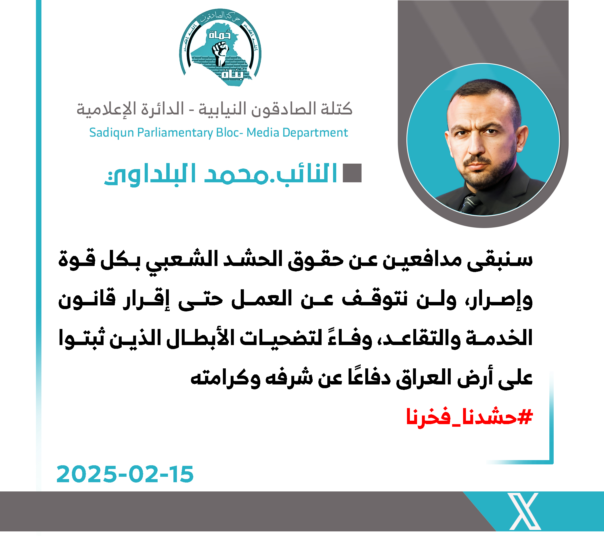 المزيداستنكر النائب عن كتلة الصادقون، أحمد الموسوي، الجمعة، سحب وتعطيل قانون الخدمة والتقاعد لمنتسبي الحشد الشعبي بعد استكمال مناقشته والتصويت عليه بالإجماع داخل لجنة الأمن والدفاع، فضلاً عن...