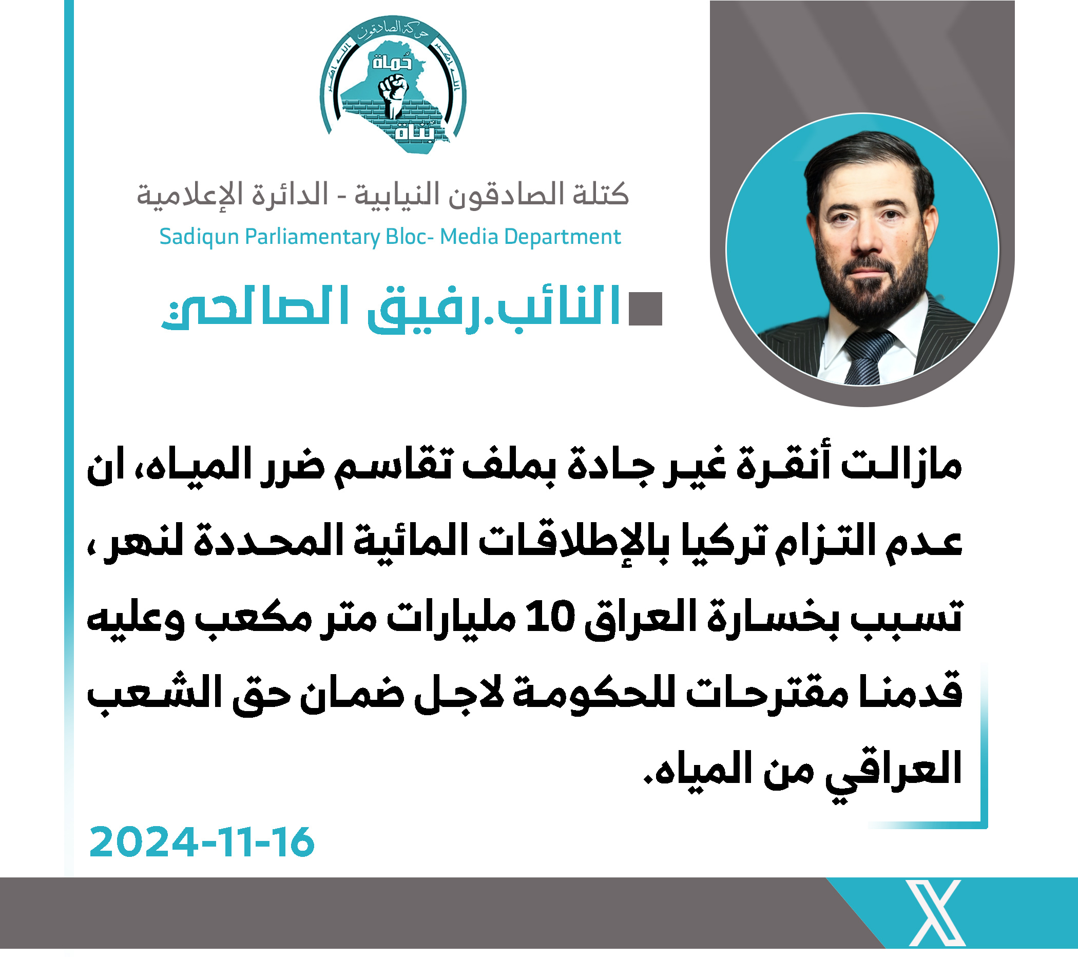 الصالحي يكشف حجم خسائر العراق المائية بسبب سياسات تركيا وعدم التزامها بإطلاق حصته من المياه